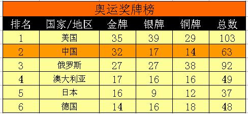 5、 表格页(制作如下奖牌榜)(10分)