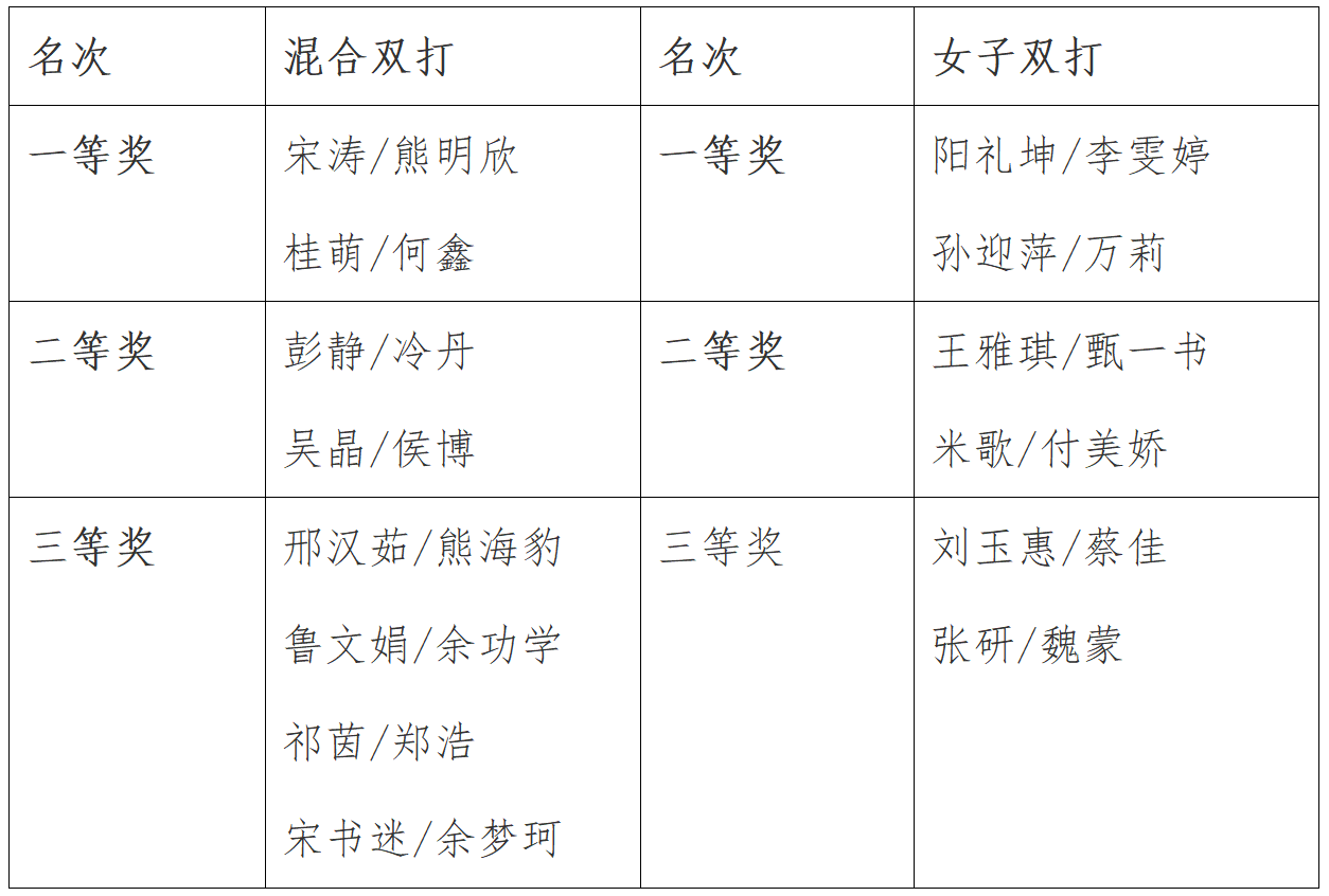 首届华中师范大学附属小学教职工羽毛球赛名次表