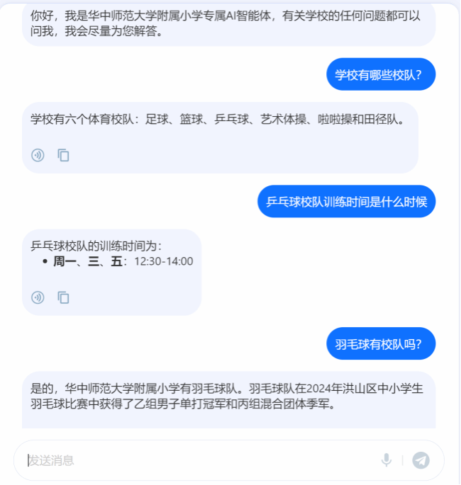 2025年5月6日,华中师范大学附属小学的专属AI大模型“附小智脑”重磅推出新功能——“家校智联”。所有官微用户可以通过这一功能即问即答。