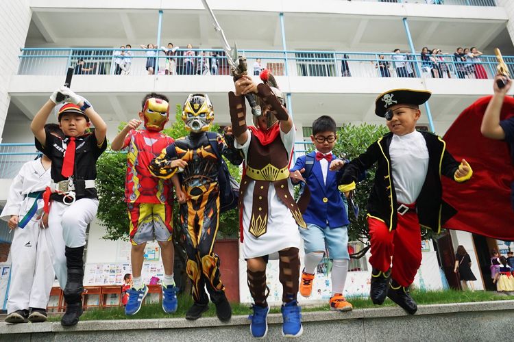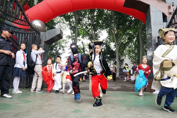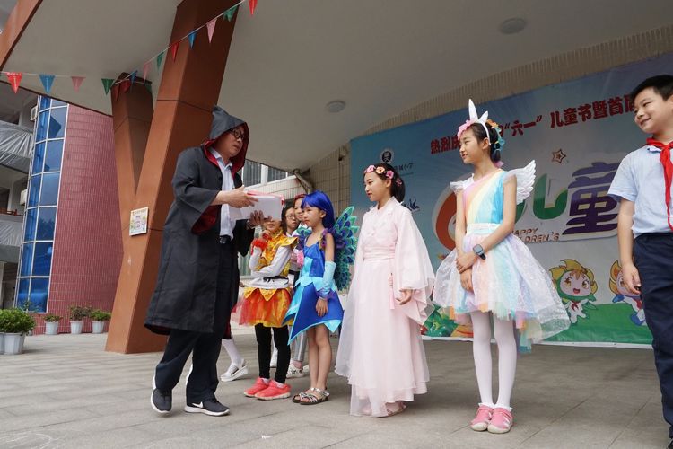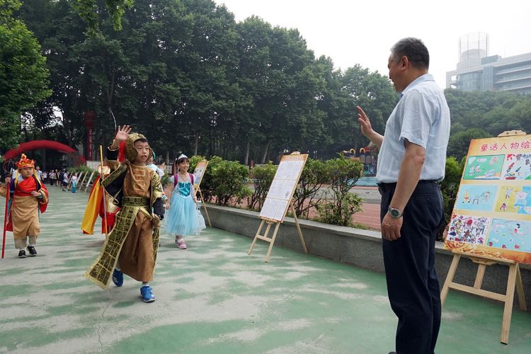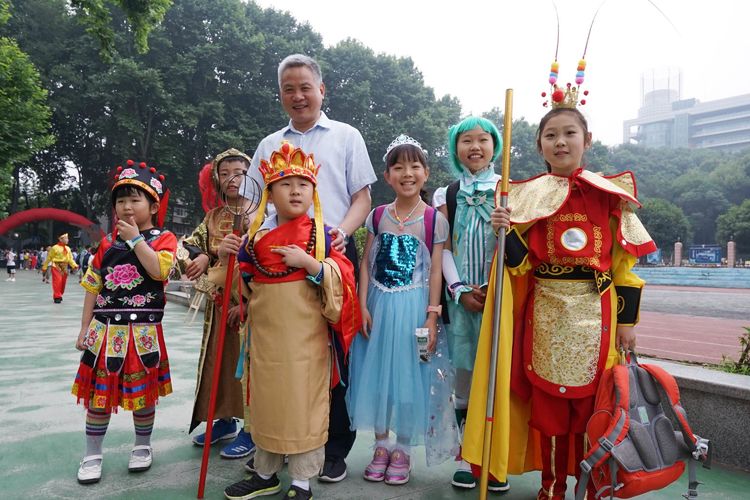 5月31日上午八点,华师附小沈爱华校长如往常一样,在校门口迎接每一位孩子的到来。与往常不一样的是,走进校门的不再是一个个身着校服的小学生,而是一个个童话中的小精灵!艾莎公主、孙悟空、葫芦娃、唐僧、二郎神.....每个孩子打扮成自己最喜欢的人物形象,高高兴兴地走进校园,今天,他们就要以自己最喜欢的样子,参加学校“迎六一暨童话节”庆祝活动,孩子们兴奋极了!