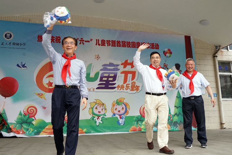 本次庆祝活动得到了大学领导的热切关注。华中师范大学副校长蔡红生、华中师范大学本科生院副院长张遗川、中华儿童传统童话项目指导专家孙正国教授一行早早地来到附小,与全校师生共度美好时光!