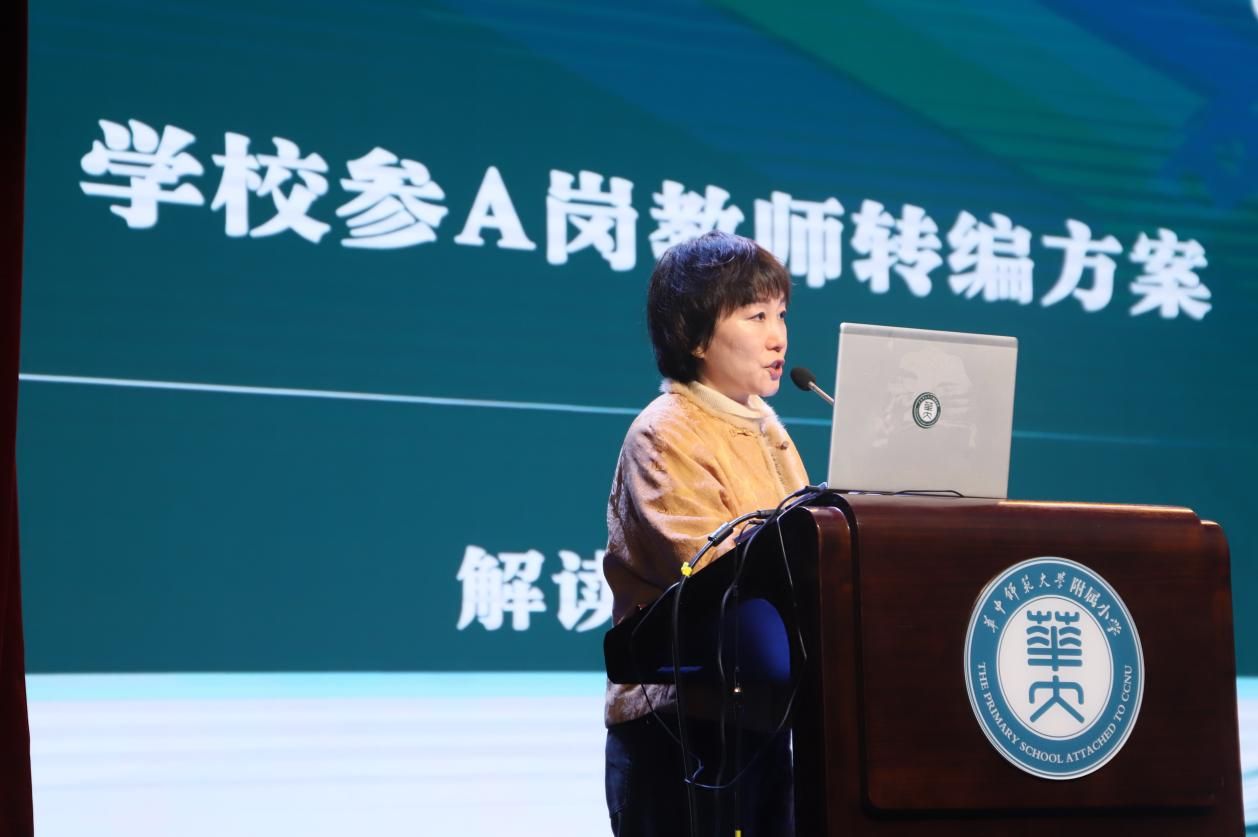 会议第二项议程,党总支委员、南湖校区负责人彭静同志解读《学校参A岗教师转编方案》。她围绕方案出台背景、转编范围、资格条件、实施步骤等核心内容说明,明确转编工作时间节点与纪律要求,为教师队伍优化调整和完善职业发展通道提供指引。