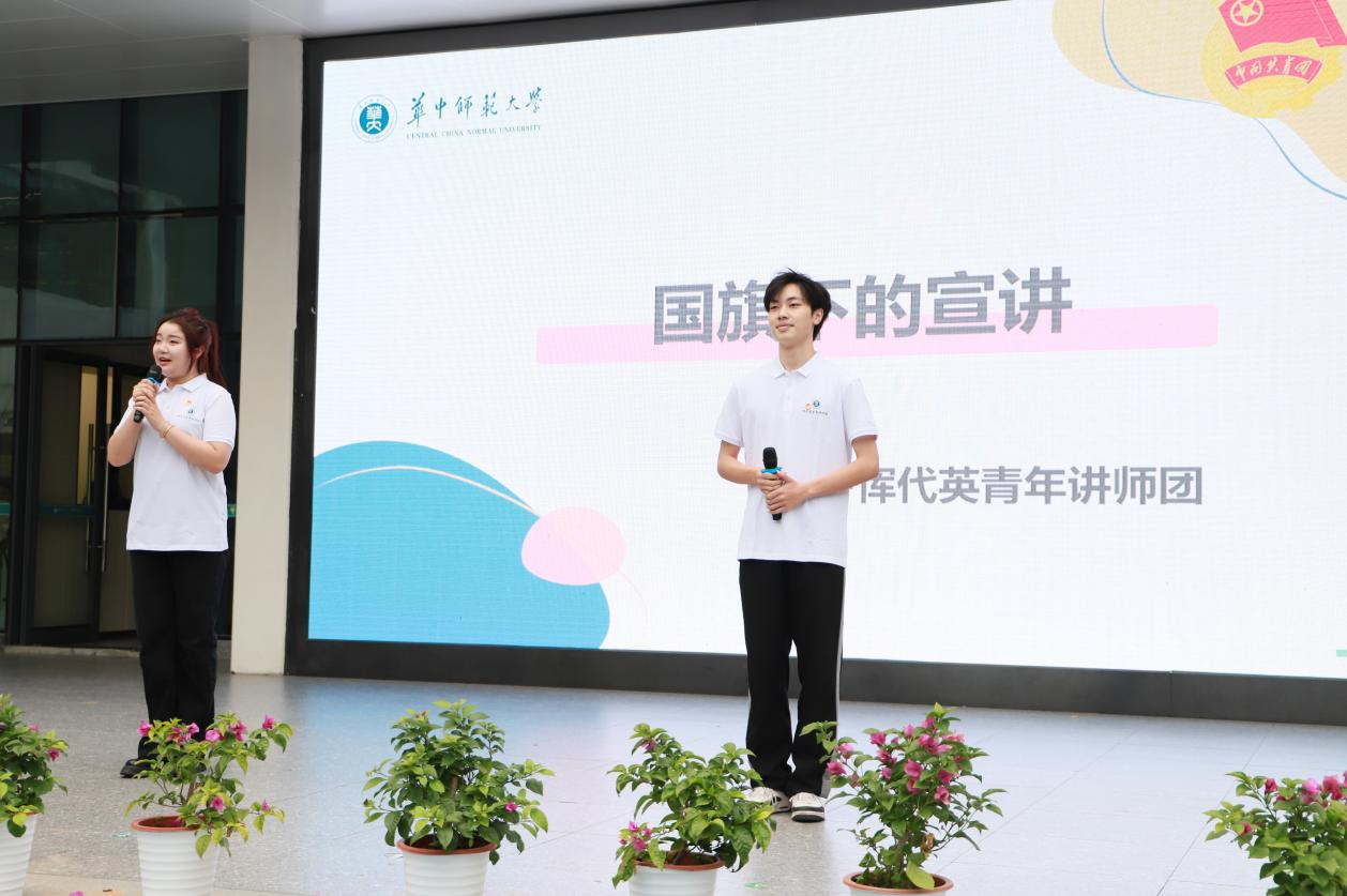 为深入学习贯彻习近平新时代中国特色社会主义思想和党的二十大精神,国庆前夕,华师附小少先队大队与共青团华中师范大学委员会国旗护卫队、恽代英青年讲师团在华师附小共同举办了“弘扬民族精神,厚植家国情怀”为主题的升旗仪式。