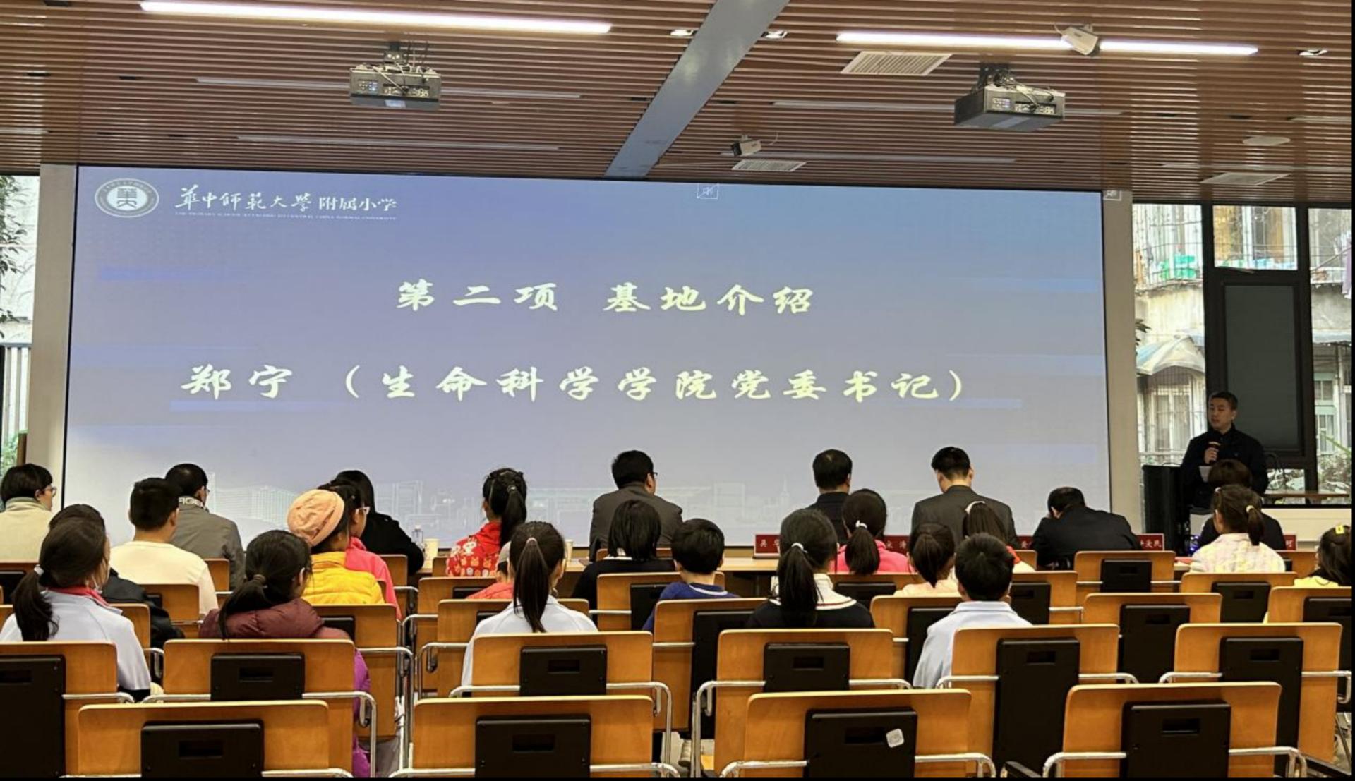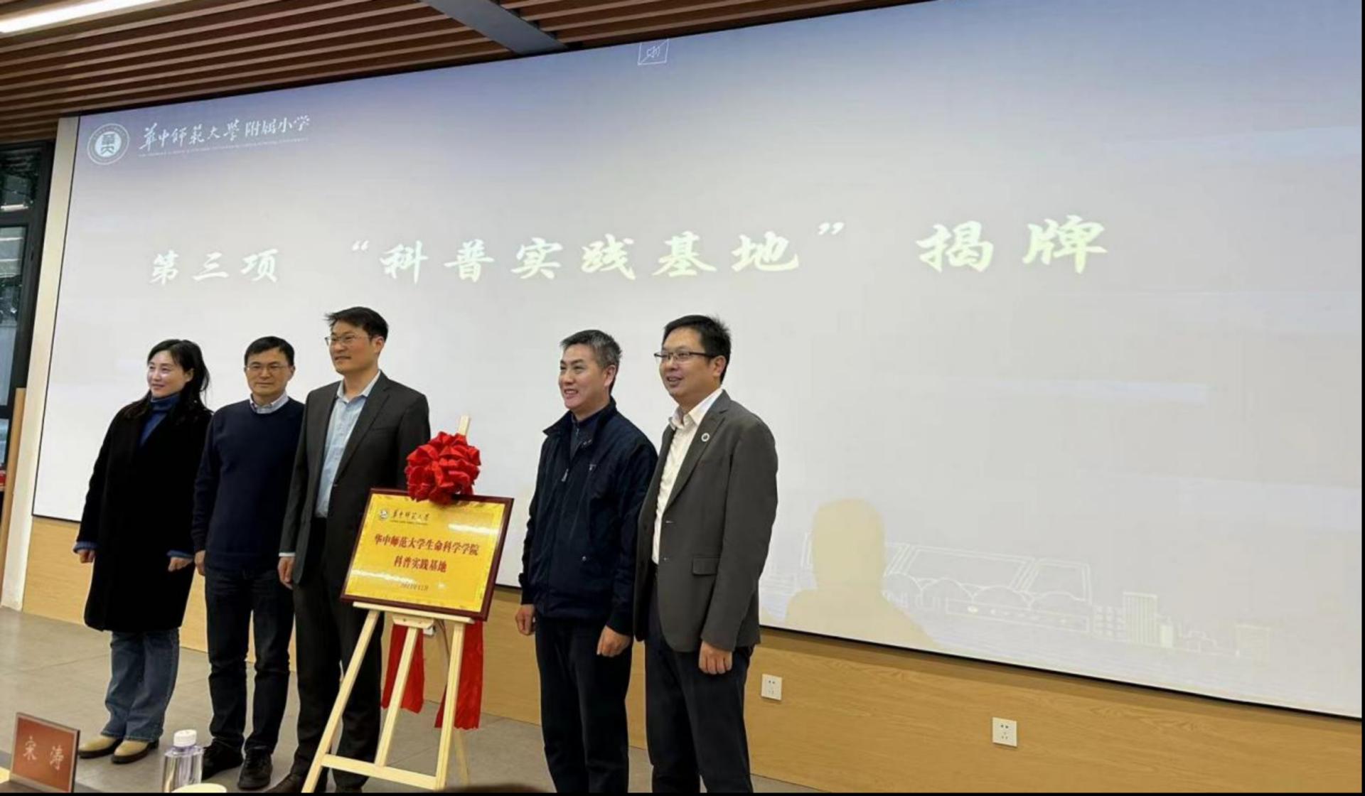 仪式上,郑宁、罗高峰、张静、闵金荣、宋涛代表生命科学学院与附小共同为“科普实践基地”揭牌,并由朱曼璐教授为孩子们举行了科普大讲堂课程讲授。