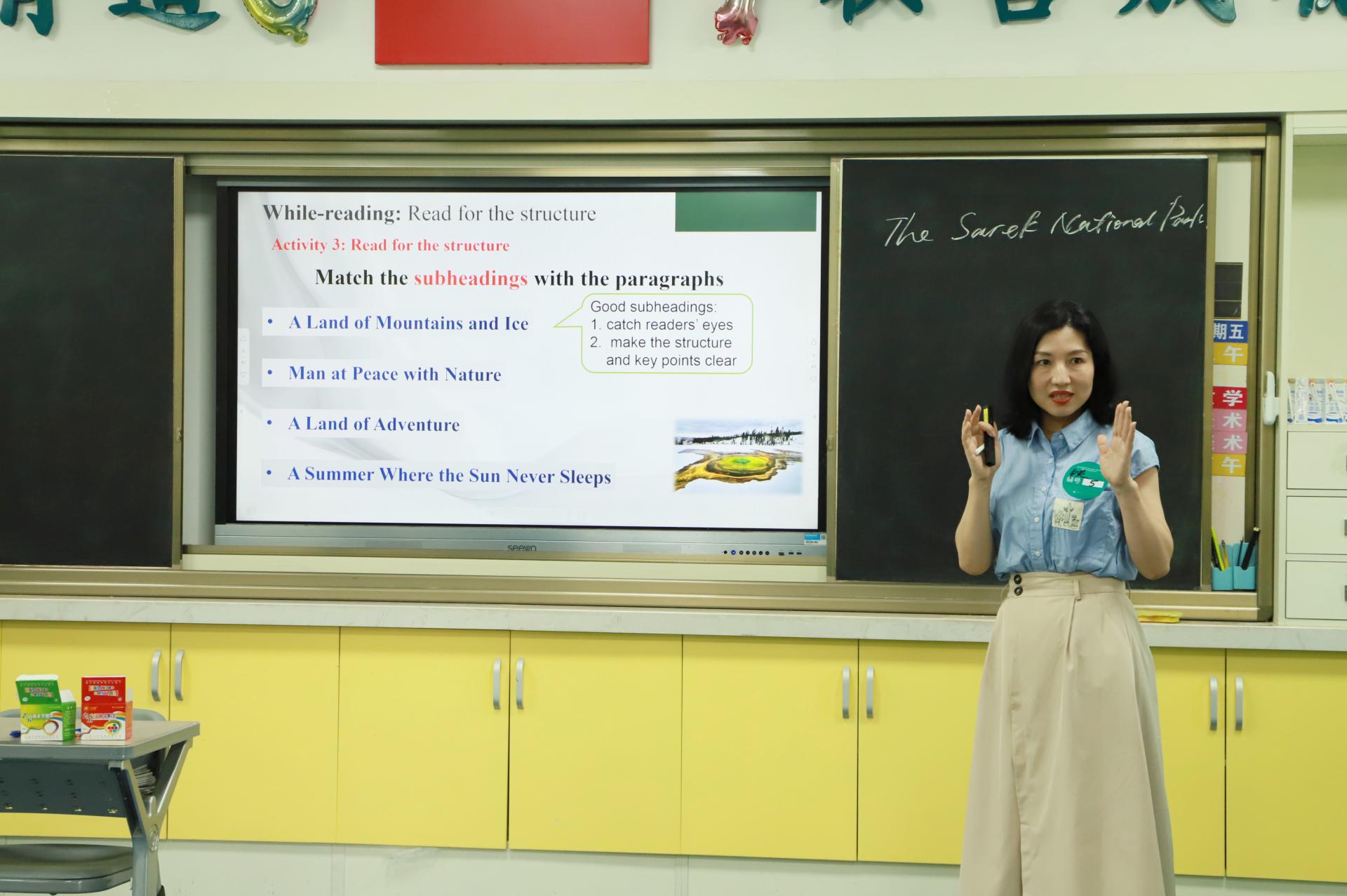 参赛老师都做到了“课堂无生,心中有生”:有扎根中华文化、培育文化自信的阅读课堂,有立足真实情境的全英文课堂,有层层推进、逻辑严密的数学课堂,有信念明确、铸魂育人的思政课堂。在赛课过程中,教师们关注学生的主体地位,注重学生学习过程,尊重学生身心成长。所有参赛教师都通过自编、自导、自演的模拟课堂,展现了扎实的教学功底和新时代教师的独特风采,其别具匠心的教学设计,让每堂课各具特色、异彩纷呈。