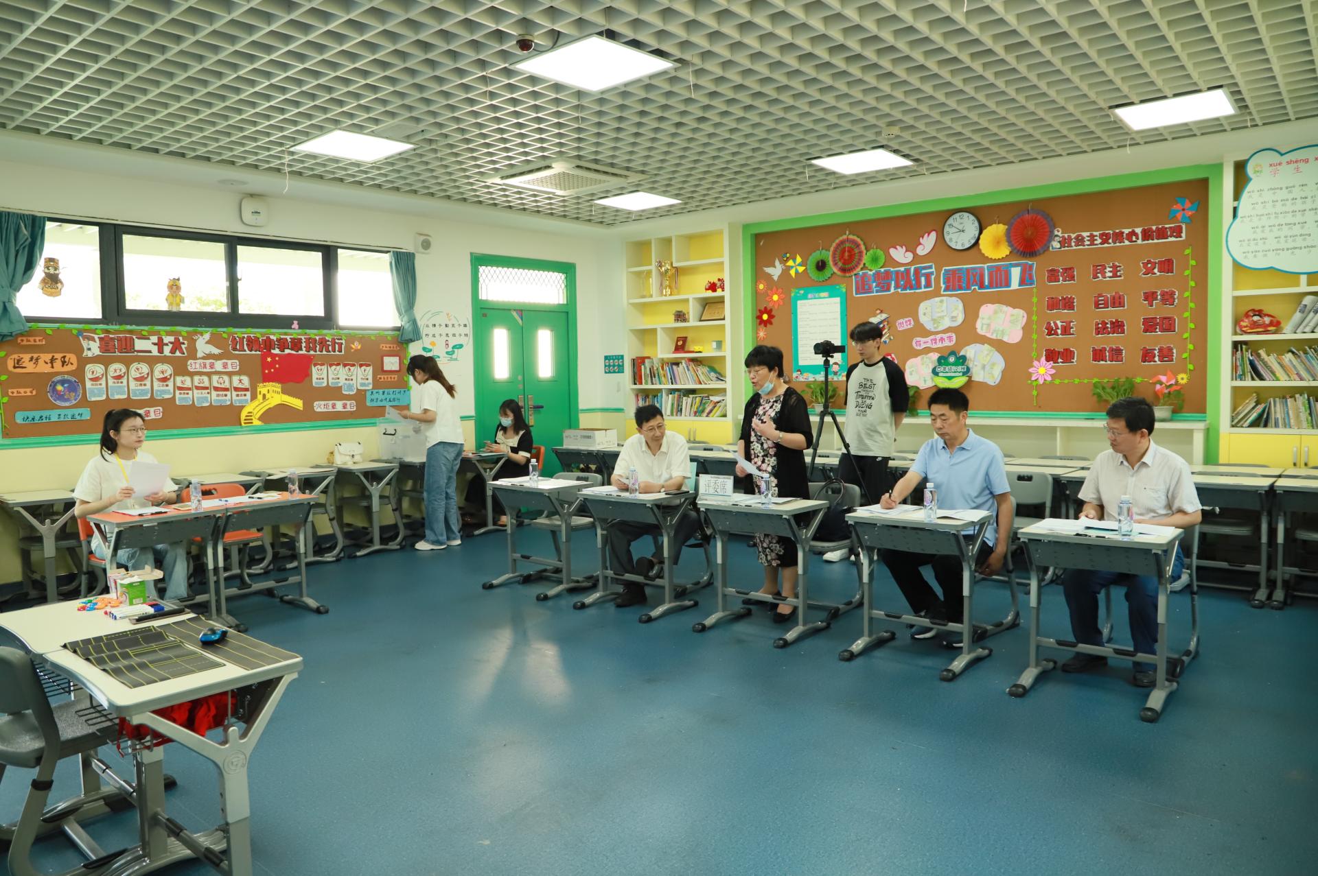 此次预赛历时两天,共计45位参赛选手齐聚华中师范大学附属小学南湖校区,参与角逐。竞赛以“上好一门课”为理念,总分100分,由教学设计、教学展示两部分组成,评选权重分别为 20% 和 80%。教学展示分为20分钟课堂教学、10分钟教学阐释两个环节,采用“无生教学”形式。竞赛分小学组、中学语文组、中学数学组、中学英语组、中学政治组5个组别进行。