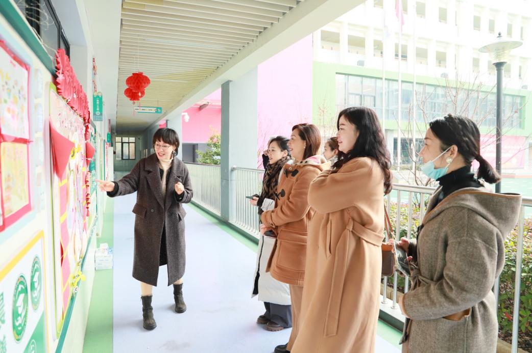 在校区负责人彭静的带领下,首先介绍了学校刚刚开展的“咵武汉,爱家乡”为主题的“中国系列”课程。看到班级宣传栏上同学们栩栩如生的美食手工作品,校长们不禁为学生的创造力感到惊叹。