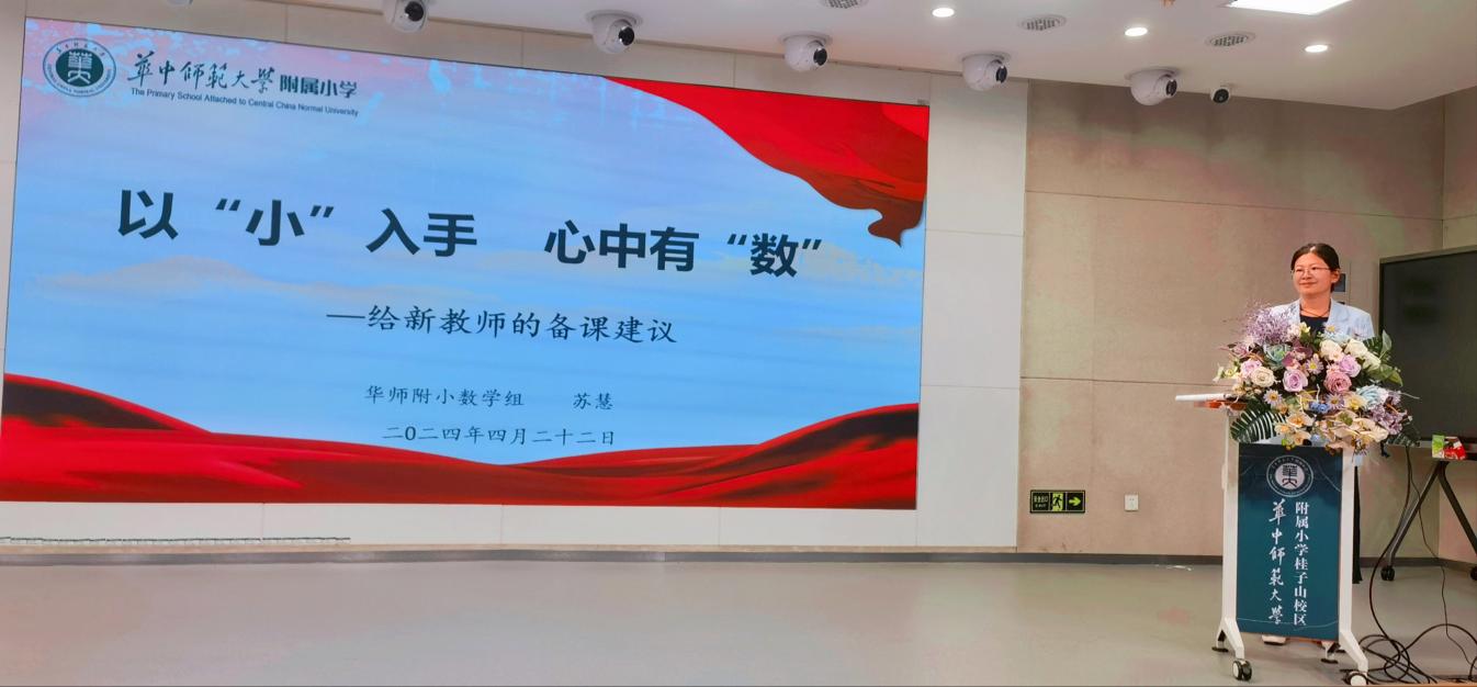 优秀数学教师代表暨数学大教研组长苏慧老师围绕《以“小”入手 心中有“数”》这个主题,在会上介绍了备课的三种层次和三种方式。她指出,站在巨人的肩膀上只是成为优秀教师的第一步。通过认真学习和刻苦钻研,实习生们在历经“读”、“思”、“达”三个阶段后,最终是可以具备较高教学技能的。