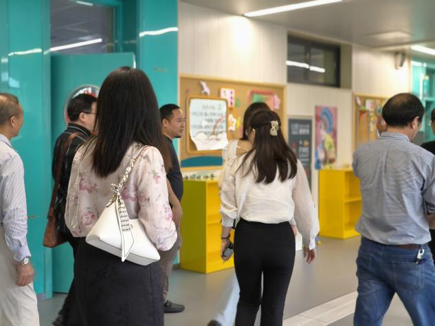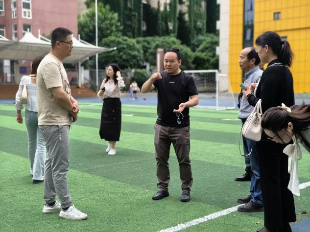 在支部书记唐从义的带领下,李志刚秘书长和东风52小学教师团队从学校大门出发,分别参观了生贵厅、公书林、文化长廊、学生教室等地,以及足球场、篮球场、乒乓球室等训练场地和书法、美术、舞蹈等专用教室。参观过程中,支部书记唐从义还为大家讲解了华师附小办学理念、历史沿革、近年来办学成效以及校园文化建设等情况。参观的客人们频频点头,时不时举起手机记录学习,对我校的校园环境、校园文化、办学特色等给予了充分肯定和高度赞扬。