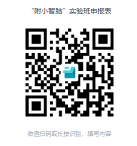 申报方式:班主任牵头,组织任课教师团队商议,班主任填写《"附小智脑"实验班申报表》见下方二维码。