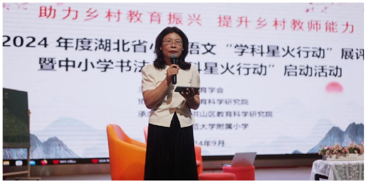 27日上午,活动最后一项议程由湖北省小语会副秘书长、湖北省中小学书法“学科星火行动”秘书长、潜江江汉油田教育集团副院长李萍,湖北省中小学书法“学科星火行动”项目组秘书长、武汉市洪山区教育科学研究院书法、小学语文教研员晏晋芳,分别作小学语文“学科星火行动”、中小学书法“学科星火行动”工作总结和部署。