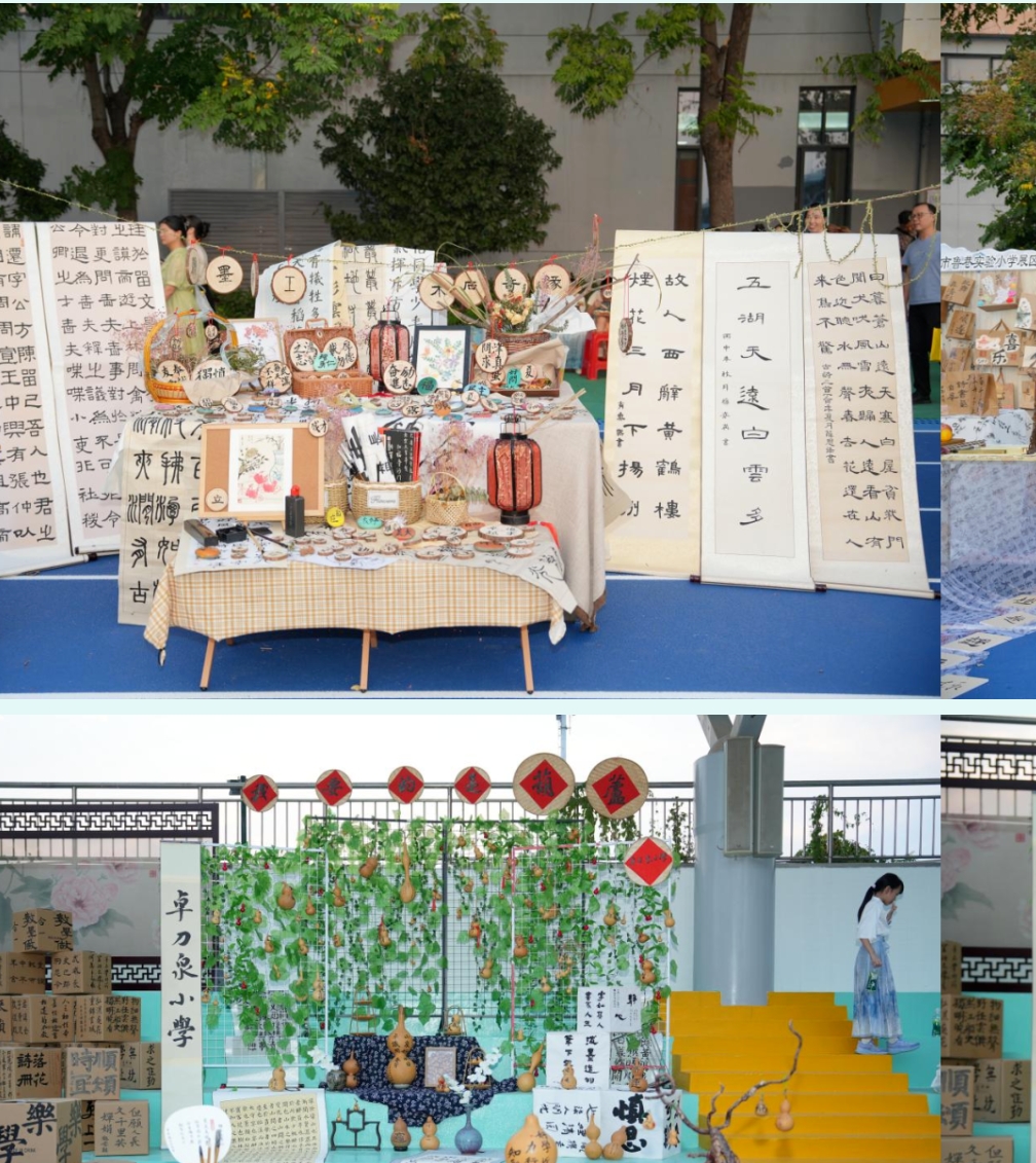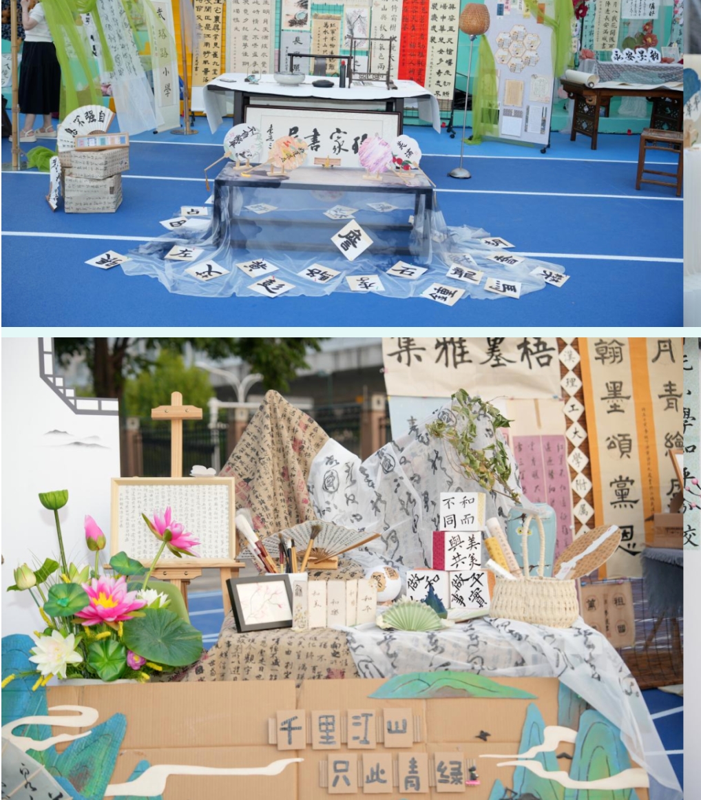 现场,洪山区书法教研团队还组织本区20余所省市书法特色校等组成“书法集市”,在操场上展示各校书法成果,并与到场师生热情互动,氛围活跃。