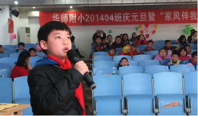 “家风如细雨,随风入心灵”,12月25日上午,华师附小四(4)班家风故事汇演在校阶梯教室举行,四(4)班15名学生代表,与学校领导、全班同学及到场家长分享了他们的家风故事,本次汇演就此拉开了华师学生成长中心举行“家风伴我成长”故事展演活动的序幕。