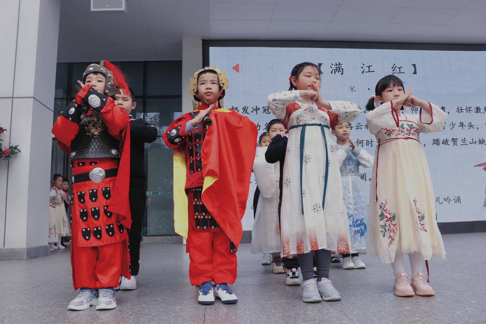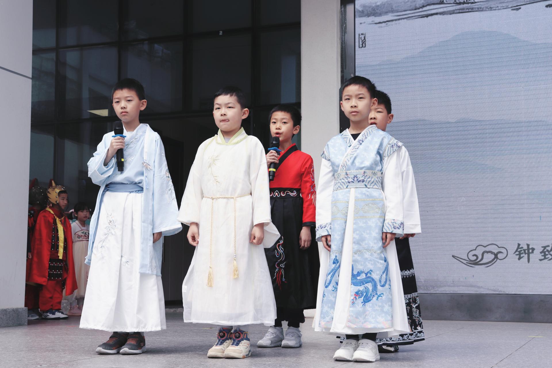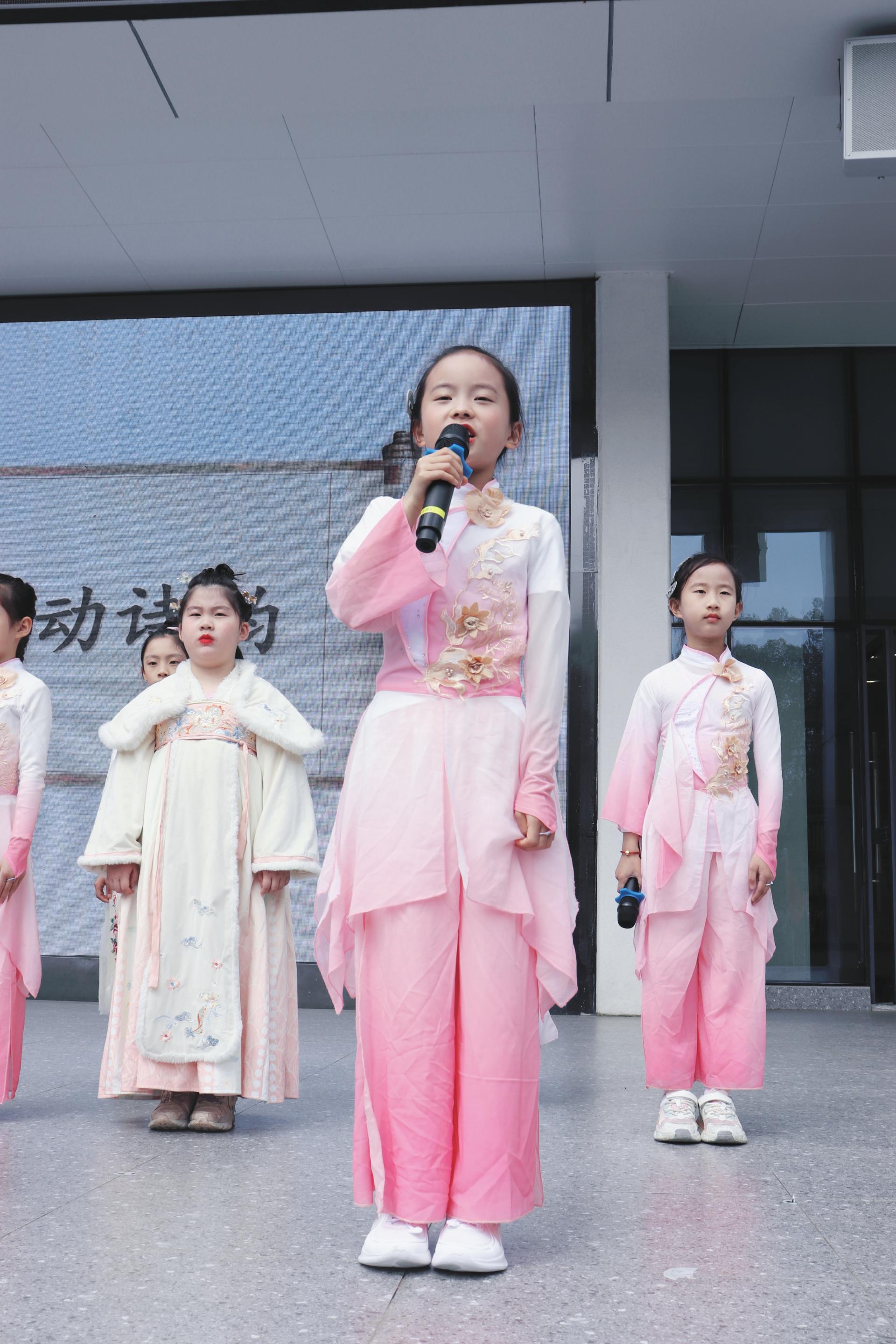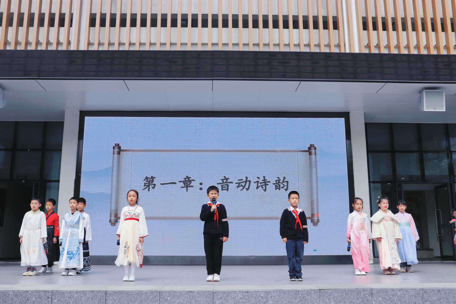 古诗词中的音律之美,把诗人的喜怒哀乐诠释得淋漓尽致。郑瑞淇和刘颜岑用宛转悠扬的童声吟唱了苏轼的《水调歌头》(明月几时有)。全校师生齐声合唱,校园成为了歌声的海洋。