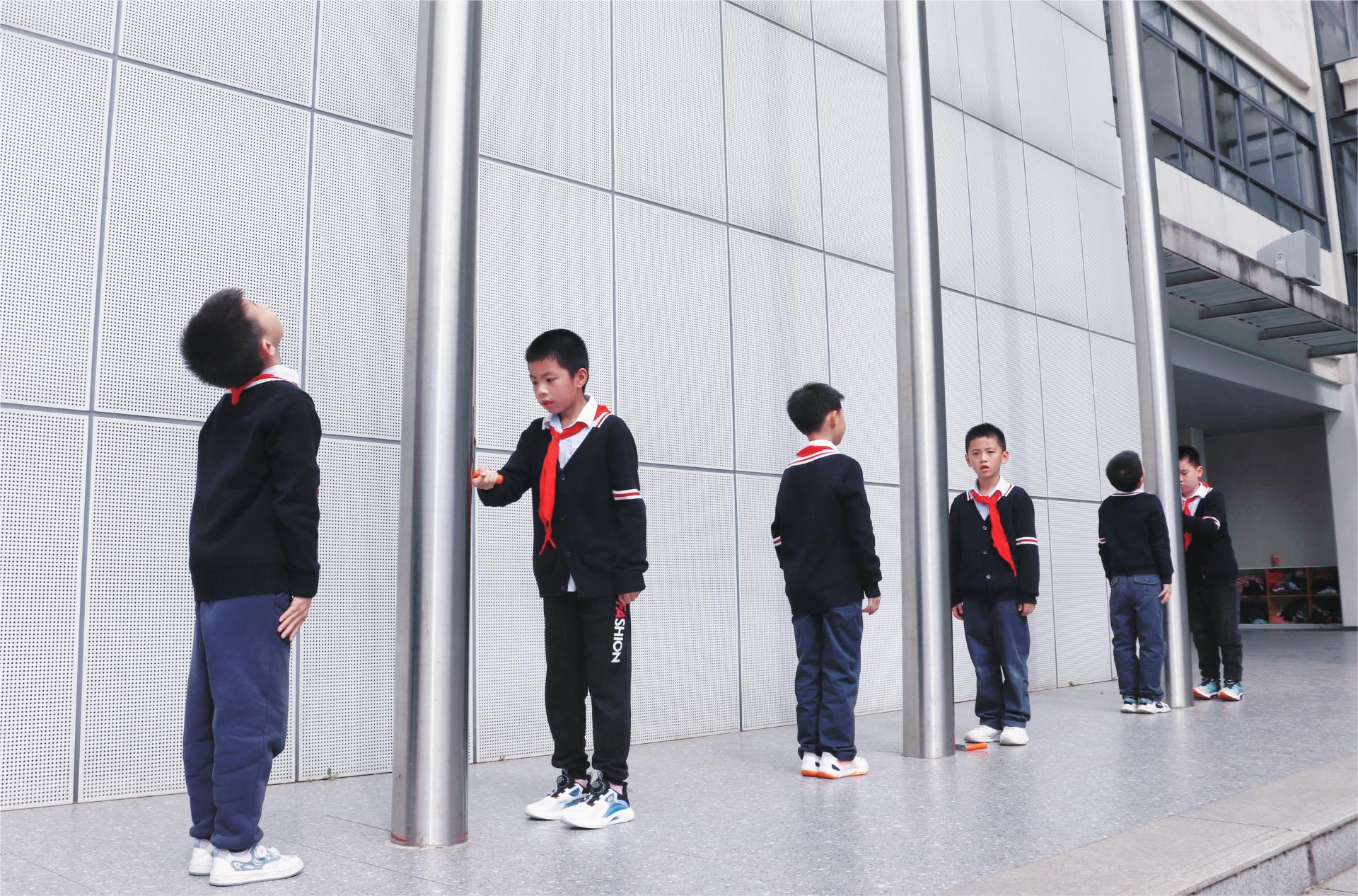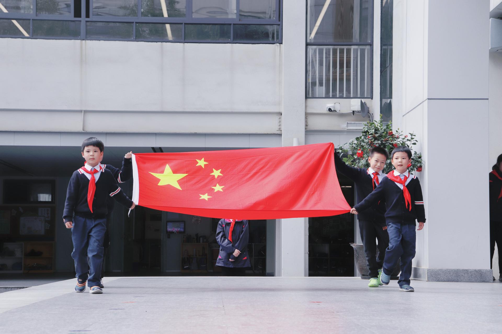 在大队委王子怡的指挥下,附小全体师生齐唱国歌,庄严清朗的歌声响彻校园。随后,伴随着朝气蓬勃的华师附小校歌,华师附小校旗和201中队旗也冉冉升起,随风飘扬。