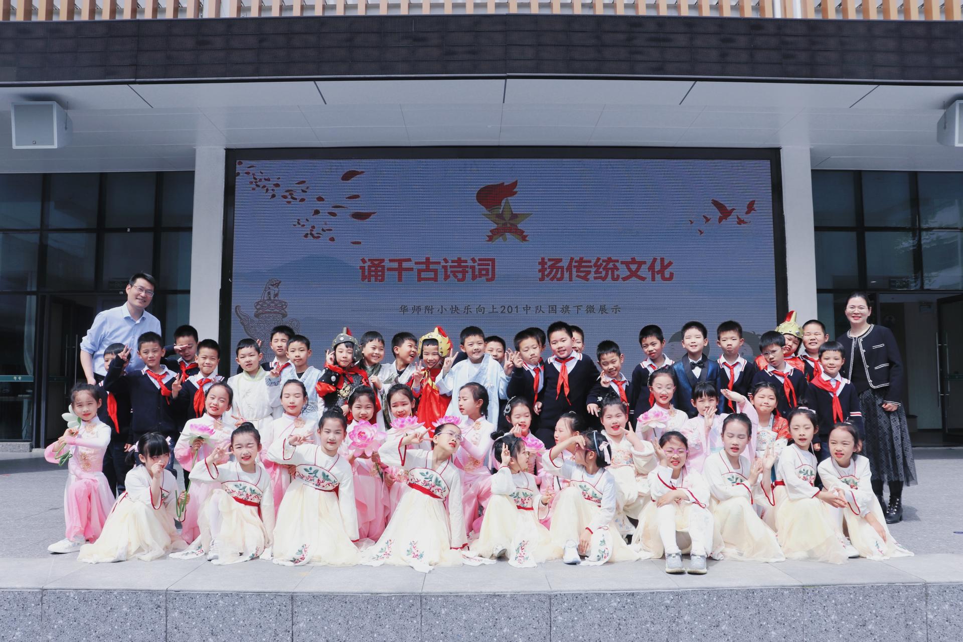 华师附小校长宋涛也给予本次国旗下微展示高度评价,夸赞201中队的全体队员展现出了作为少先队员和华师附小学生的优秀品质,并与201班全体师生亲切合影。