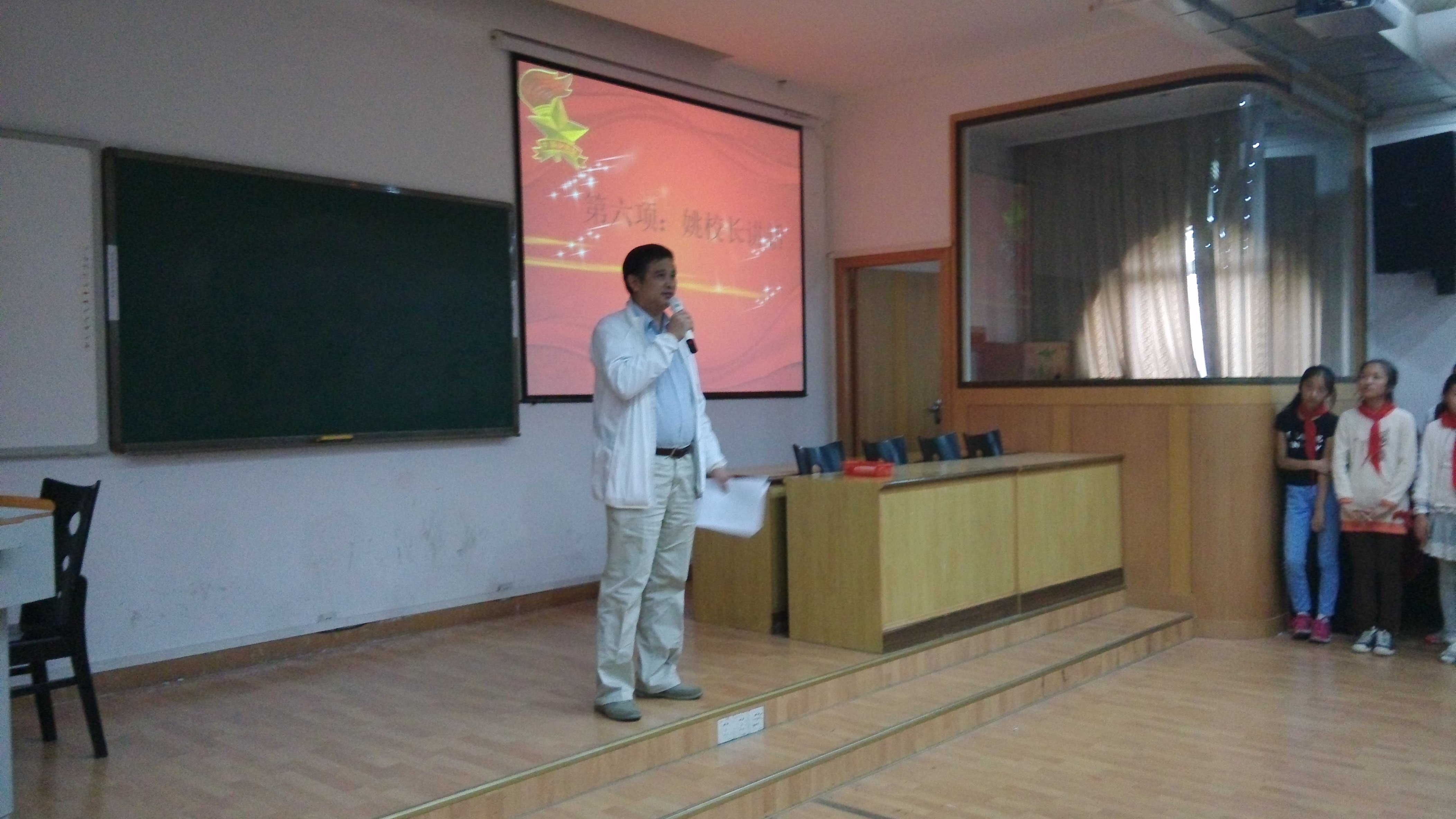 2014年10月13日星期一下午,华师附小为庆祝中国少年先锋队建队65周年,引导队员们继承和弘扬少先队的光荣传统,落实少先队组织的根本任务,推进“红领巾心向党”活动,抓住庆祝建队节这一有利契机,开展了一年级新生入队仪式的活动。