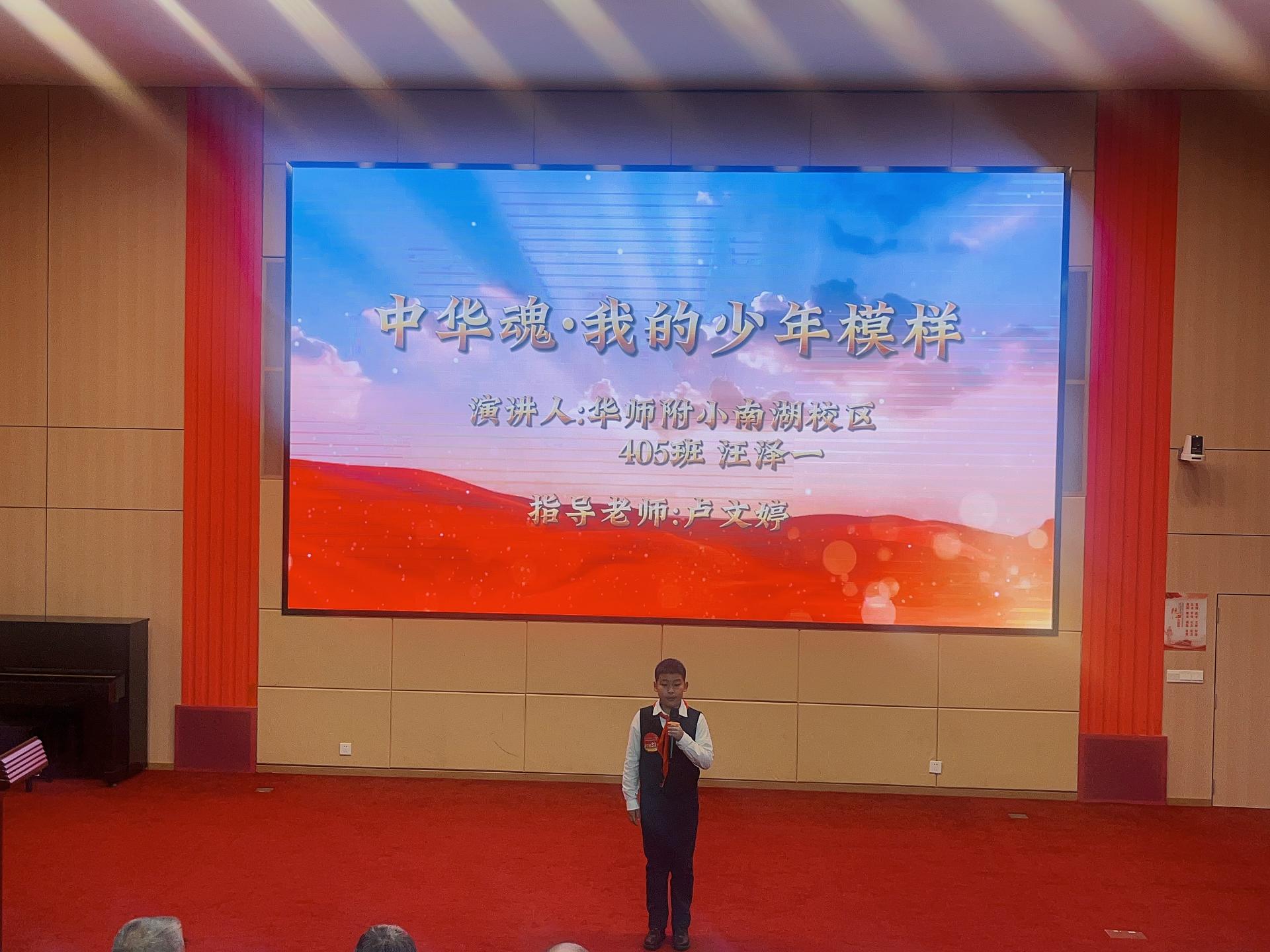 四(5)中队汪泽一参加洪山区“中华魂”演讲比赛获三等奖(指导教师:卢文婷)