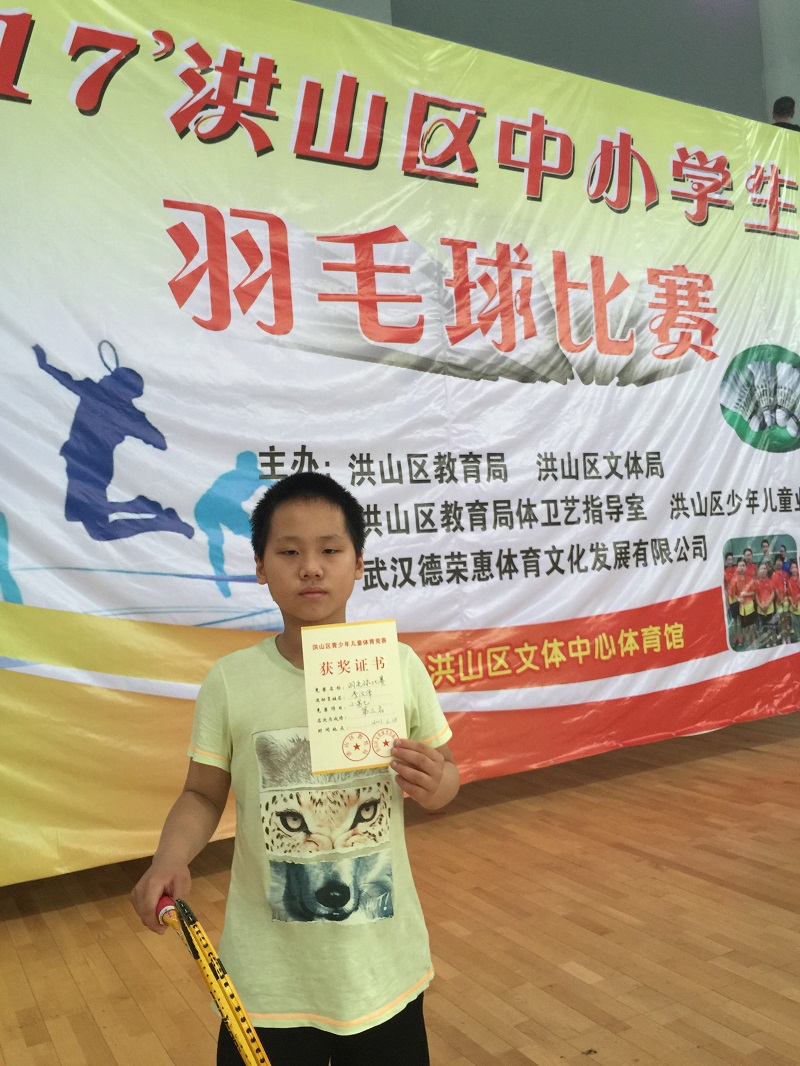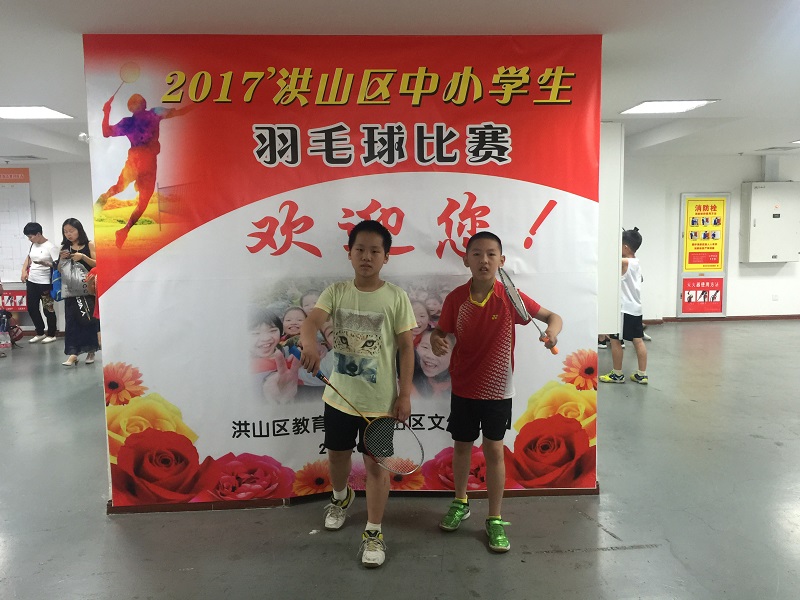 6月18日,洪山区2017年中小学生羽毛球比赛在洪山文体中心体育馆拉开帷幕,小学组21所学校近200名运动员参加了角逐。比赛设男、女单打项目,采用单场淘汰赛制,决赛采用三局两胜制进行,我校代表队六名运动员参加了此次比赛,他们分别是:三(1)班刘彧昕、四(5)班李汶泽、五(2)班张天祺、刘弈辰、五(3)班郑云麟、五(4)班付昭元。