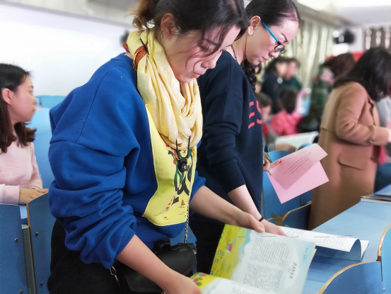 六个家风故事表演结束后,进入此次活动的重要环节——“最美家风集”展评。来自全校33个班级的37本家风故事集册集中摆放在展评区。嘉宾、学校领导、老师、学生纷纷进入展评区观看、交流、投票。大家看得十分认真。对于家长来讲,这是一次全新的体验,既可以感受本班的家风风采,又可以欣赏到其他班级的家风故事。对于老师们来讲,这是一次宝贵的学习机会,可以取长补短,互相学习经验。