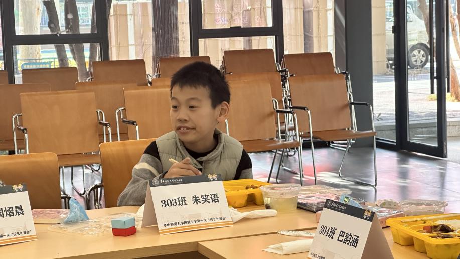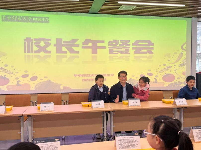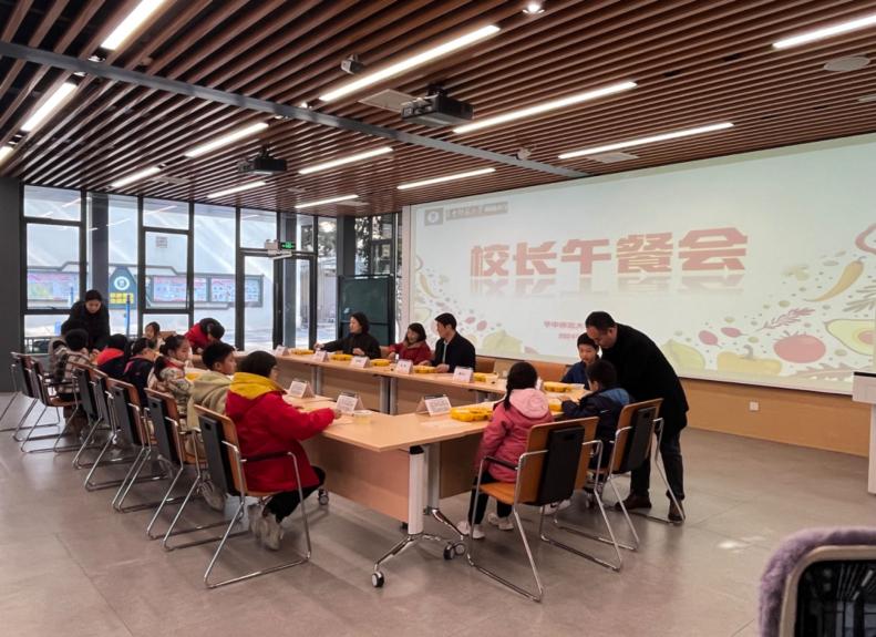 为了搭建学校领导与在校学子沟通交流的新桥梁,加强学生与老师的沟通,倾听学子的声音,华中师范大学附属小学开展了“校长午餐会”活动,并将“与校长共进午餐”作为学生荣誉奖励列入到校园阳光评价奖励清单中。2024年1月4日中午,华师附小第一次“校长午餐会”在生贵厅如约举行。
