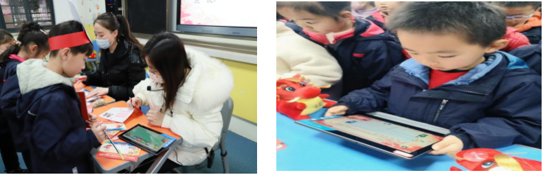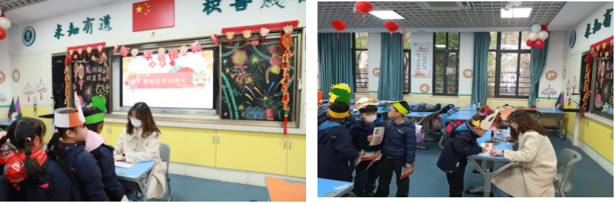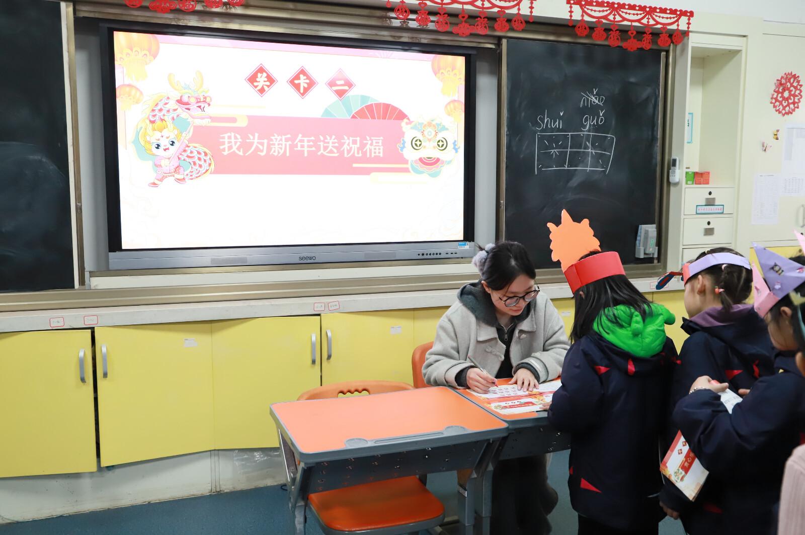 语文组的老师们结合春节传统文化,设计了“小小书法家过春节”、“我为新年送祝福语”、“新春佳节乐咵天”、“赏心乐事说不完”和“新春快乐对对碰”五个闯关项目。这些项目既考察了学生的拼音书写、汉字书写、朗读能力、口语表达能力等基础语文素养,又融入了传统文化元素,让学生在闯关过程中感受到春节的喜庆氛围和中华文化的博大精深。
