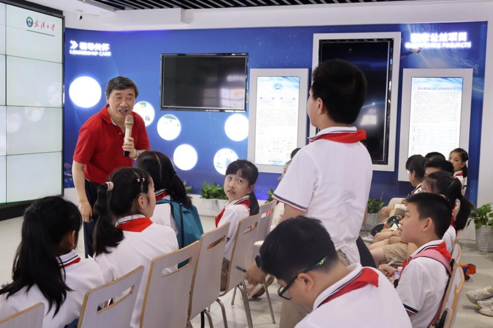 湖北省北斗高端制造业创新中心,武汉北斗产业创新中心有限公司执行董事长余峰向华师附小少年科学院的成员们表达了热烈的欢迎,并以《弘扬中国精神 拥抱星辰大海》为题为本次活动进行了致辞。