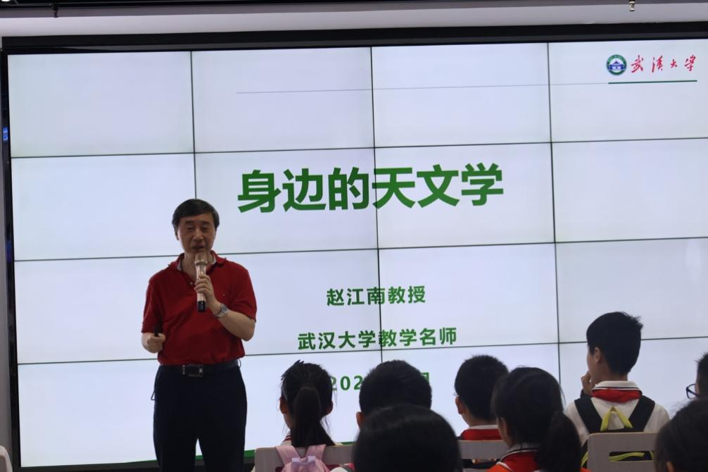 武汉大学电子信息学院的赵江南教授首先为同学们带来一场主题为《宇宙新概念—身边的天文学》的精彩讲座。赵教授用通俗易懂的语言介绍了天文学领域科学家的贡献,分享了有趣的小故事,还着重讲解了天文学领域目前的热门词汇。通过一个个生动的真实案例激发着学生对天文学的好奇心。
