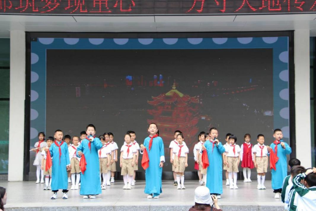 第三个篇章是《强撑少年、筑梦强国》。武汉,辛亥革命首倡之地,遵义,是中国革命的“转折之城”,一张张邮票鼓舞着两校的小朋友们争做英雄好少年。203班的小朋友们通过群诵《自古英雄出少年》、合唱《强国有我》,用生动的表演表达了新时代他们的英雄气概和远大志向。
