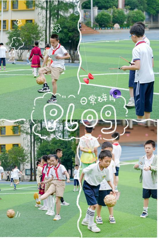 “六一”庆典活动的第二乐章,是班级庆祝活动和游园活动。每个班级自发组织了学生的庆祝活动,孩子们穿着特色的服饰,表演着排练已久的节目,在欢声笑语中与同学、老师一同度过了快乐的“六一”时光。与此同时,在校园的篮球场上,“非遗”游园活动也在如火如荼地进行着。