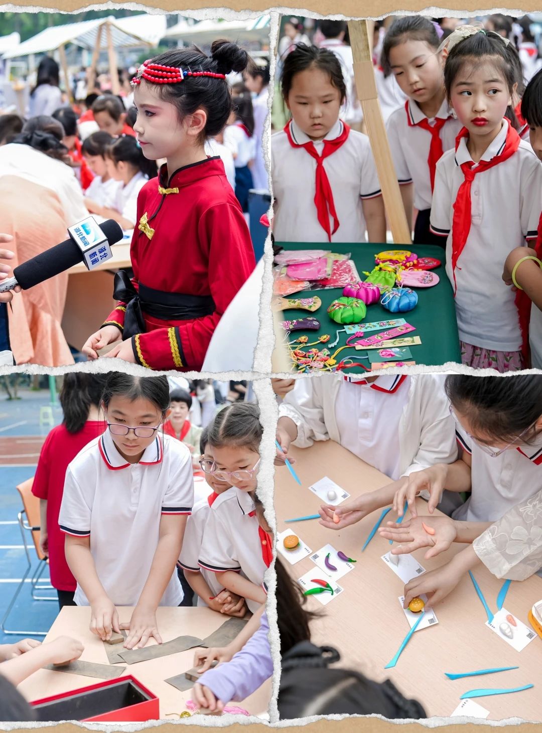 面塑的展台上,孩子们手中的面团仿佛有了生命,变成一个个活灵活现的小动物、人物,创意无限;汉绣展示区,丝线在孩子们的指间跳跃,一针一线,勾勒出细腻的图案,展示了中华刺绣艺术的绝妙之处。