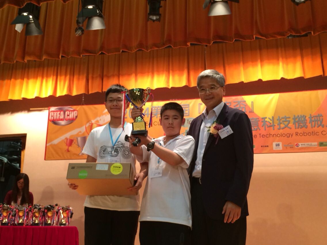 上周,我校两支创意机器人参赛队伍前往香港参加由香港创意科技教育协会主办的2014年第九届《创协杯》创意科技机器人国际邀请赛。这次比赛于2014年11月29至30日在香港将军澳香岛中学隆重举行,共有来自港、澳、台、日、韩、新加坡、中国大陆的130多支代表队,2000余名选手参赛。华师附小六(3)班吴森宇和六(5)班周仕权同学参加了类人型机器人舞蹈赛,六(3)班李秋锐同学参加了小学组轨迹赛。在强手如林、竞争十分激烈的情况下,他们团结协作、认真调试、沉着应战。比赛时,吴森宇和周仕权两位同学带领着自己的机器人一同上台,向评委和观众们展示了中国功夫,他们和机器人配合默契,其精湛的演出获得了评委和观众们的一致好评,赢得了全场最高分。通过两天的激烈竞赛,最终拿到了冠军,捧回了金杯。