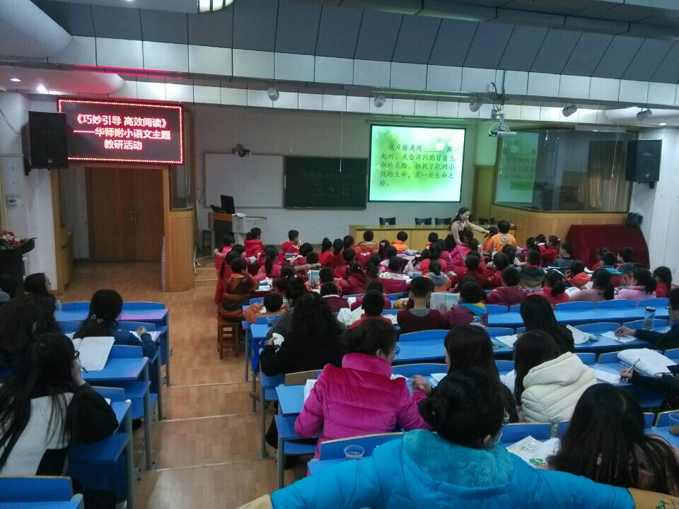 2015年1月5日,淅淅沥沥的冬雨给人带来丝丝寒意,但在华中师范大学附属小学的四楼阶梯教室里,小学语文课堂教学改革的展示与研讨活动的热烈氛围却让人倍感温暖。我校此次《巧妙引导 高效阅读》主题教研观摩活动邀请了湖北省小学语文教研专家段宗平和李作芳老师作指导,教学副校长甘爱民担任活动主持人,我校全体语文老师都参与了此次观摩与研讨活动。