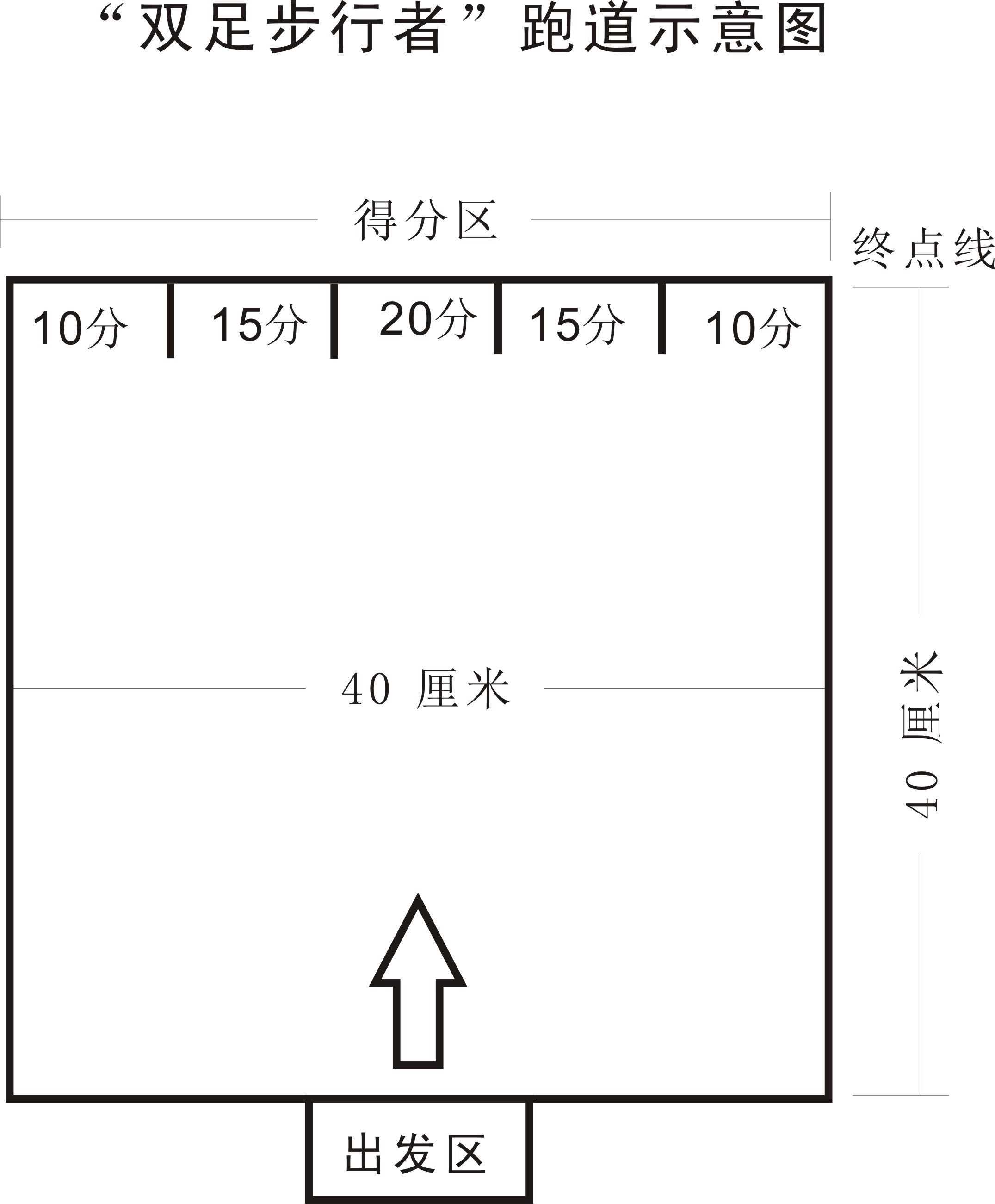 (2)直线行走比赛跑道宽0.4米,长0.4米,从起点线中点出发,机器人必须通过终点线,直线赛成绩方有效,机器人走得越直成绩越好;