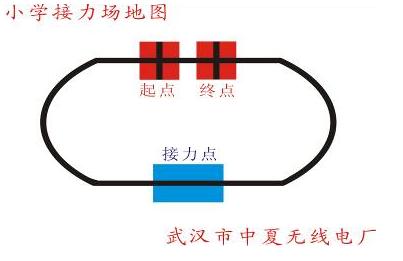 启动机器人由起点出发,在规定的时间内沿着指定轨迹行走,在行走到接力点时,触碰另一台接力机器人,自己停下,被碰的接力机器人沿轨迹行走,直到接力机器人到达终点自动停下来结束。