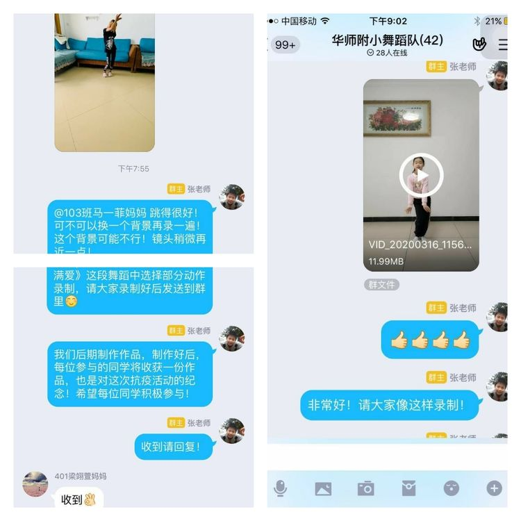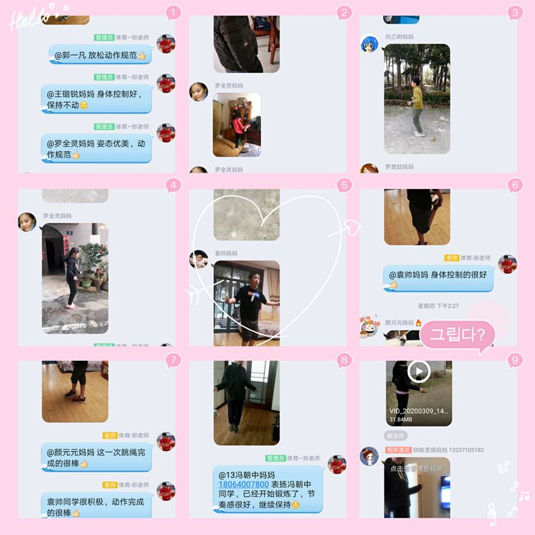 郑浩老师在六年级组织了跳短绳活动,同学们情绪高涨,踊跃参与,纷纷在班级群里发送练习视频与老师互动,郑老师一一点评回复,并希望同学们能够养成运动的好习惯。