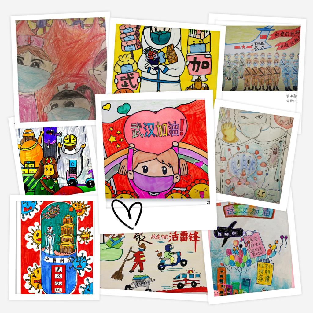 用画笔定格感动、凝聚温暖,美术组老师指导孩子们画下一张张作品将温暖送至千家万户,用信心凝聚力量。以艺术的雅致对抗疫情的严峻,让美的情操抵御病毒的袭击。抗击新冠肺炎疫情,让我们懂得了生命的价值,为我们的美育教研活动提供了更多的思考与机遇……