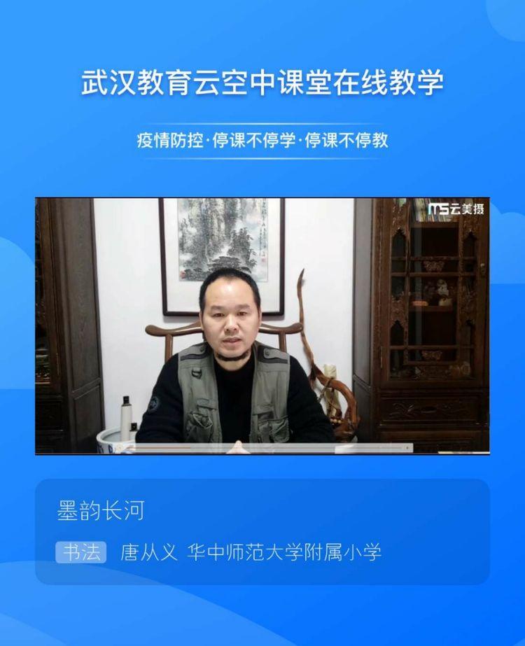 唐从义老师在空中课堂样本课《墨韵长河》中,带着同学们漫游中国书法的历史长河,探寻中国书法的奥秘。