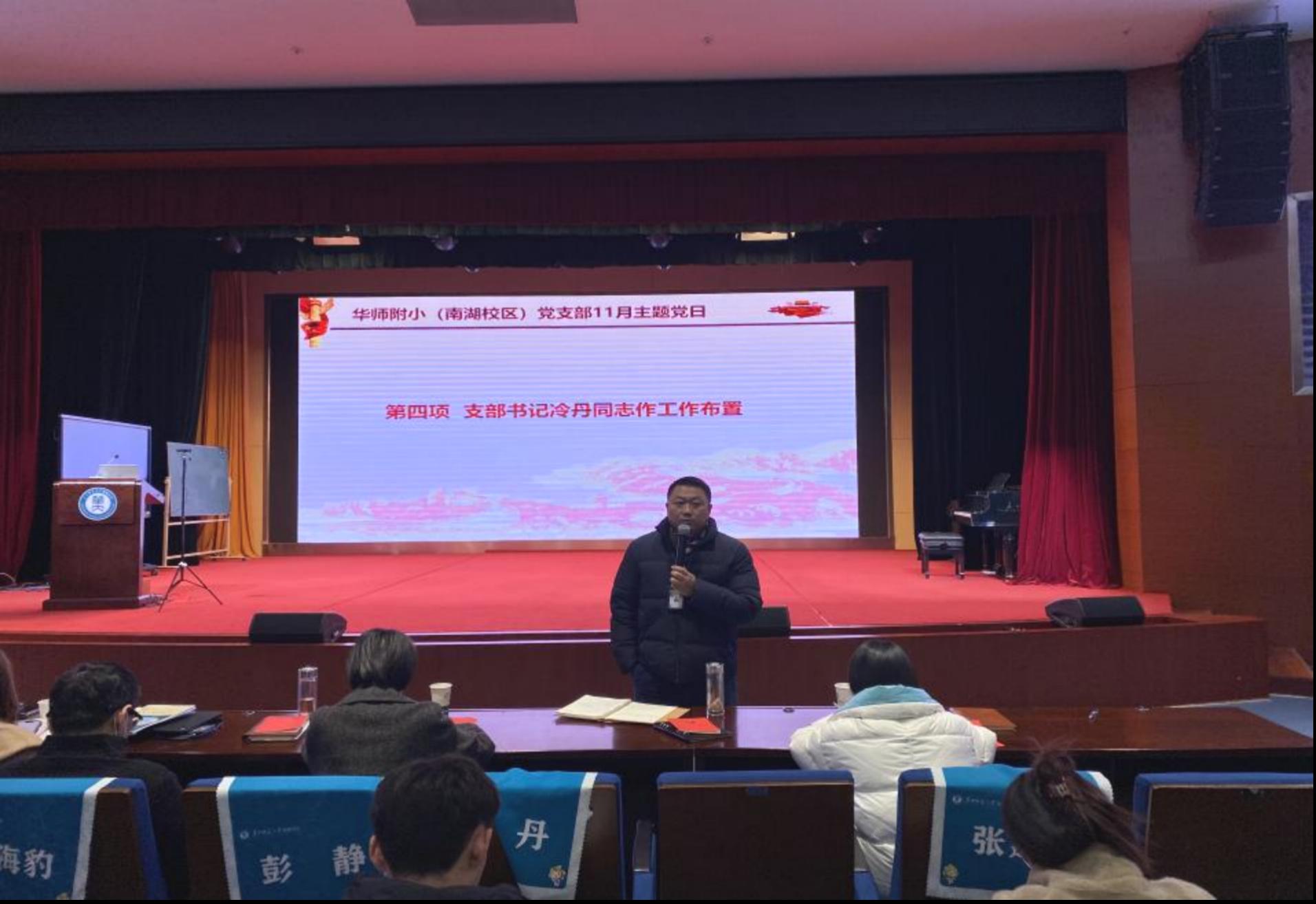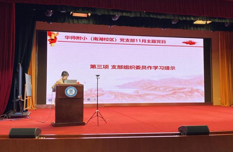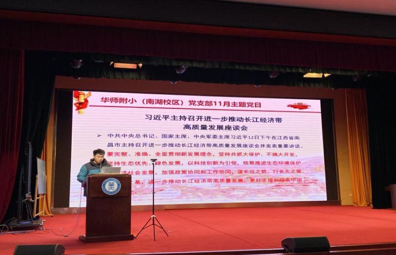 为深入学习贯彻习近平总书记有关主题教育最新重要讲话精神,通过主题学习,以学促改,以改促行,不断完善支部党建工作,提升党员同志的的党性修养。12月1日下午,华师附小(南湖校区)党支部在三楼报告厅开展了11月主题党日活动。活动由第二党小组龚勋同志主持,全体党员教师与会。