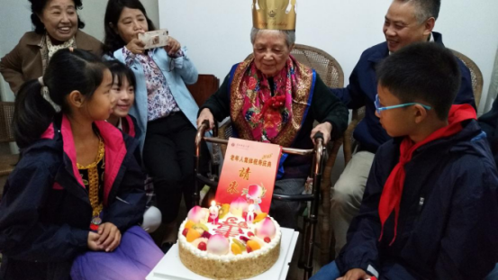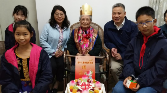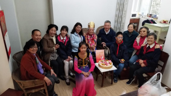 今天十月二十三日、农历九月十五、霜降。天气特别的好,阳光灿烂、秋高气爽。也是一个特别的日子,今天是附小退休教师柳明芬老师的九十岁生曰。上午十点由附小领导沈校长、副校长杨冬菊,工会主席唐从义及老协的彭智慧、吴艾莲、赵明沪三位同志,还有蔡根娣老师、李秀英书记两位退休教师代表以及五年级三位学生一行11人来到柳老师家中,为柳老师举办了一个简短而有意义的九十岁生日会。生日会在音乐声中开始,全体为老寿星唱生日歌,送祝福语。附小三位学生代表全校师生分别给老寿星表演了朗诵、舞蹈、魔方快速还原三个精彩的节目,并送上了真诚的祝福。然后柳老师许心愿、吹蜡烛并亲手切下第一块蛋糕……在座的每个人都分享了蛋糕、分享了这份快乐。沈校长拿出1963年柳老师的一张照片给她看,瞬间勾起了柳老师回忆,她给大家说起从前在附小的一些人和事,老人思绪相当清晰、口齿特别伶俐,面带笑容,满心欢喜。老人除了腿脚略有不便身体还十分硬朗。1958年从上海调到武汉已经整整60年。老人说这是她第一次这样过生日,非常开心。生日会结束时,老人依依不舍的说感谢学校领导对她的关心、感谢老协的同志对她的照顾、感谢小朋友送的节目和祝福。生日会的时间虽不长,但过的十分有意义,也是十分令人难忘,我们一起祝愿老人福寿安康、长命百岁。
