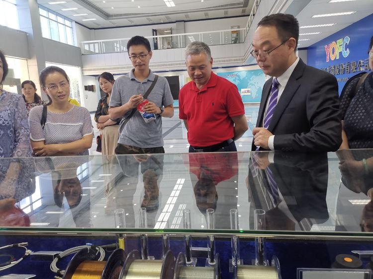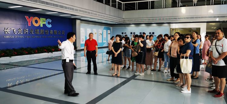 武汉长飞光纤公司党委副书记、工会主席张光华,和公司线缆产品线副总经理陈慧雄,热情接待了附小教师一行,带领老师们参观了长飞公司,详细介绍了公司历史和发展现状。
