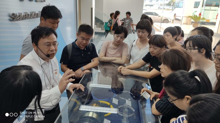 随后,老师们分组参观车间,近距离感受这“高大上”的事物——“光纤”的诞生过程。