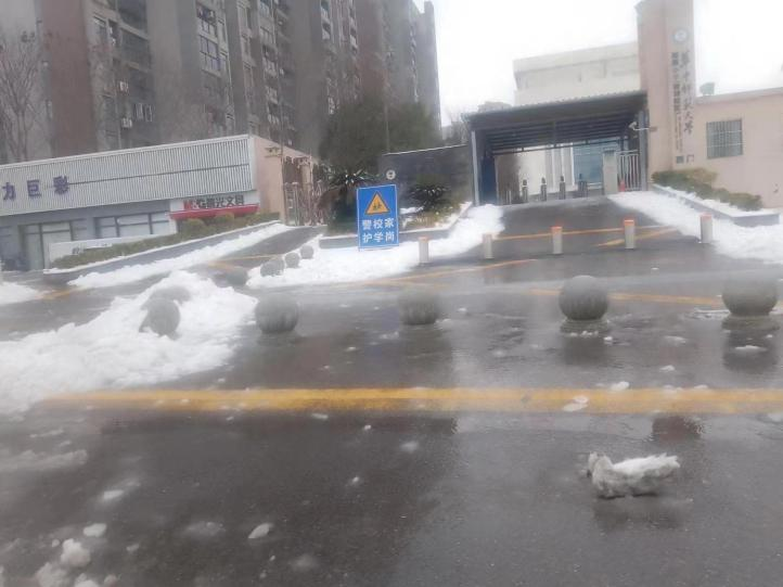 “忽如一夜春风来,千树万树梨花开”。临近开学,武汉出现寒潮降温和雨雪冰冻天气,为了保障新学期平稳开学,让学生安全返校,2月23日下午,南湖校区组建一支由行政干部、党员教师、青叶后勤服务人员、保安团队组成的“校园除雪突击队”,大家以“雪”为令,闻令而动,积极开展扫雪除冰志愿服务活动。