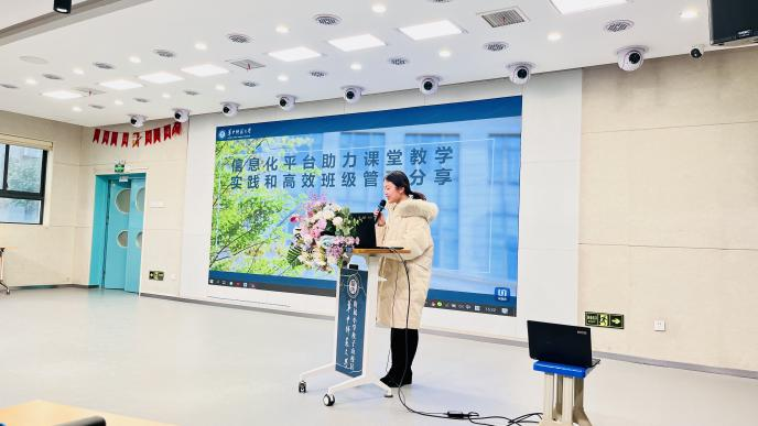 随后,桂子山校区吴一凡老师以“巧融信息技术 打造智慧课堂”为题分享了自己打造信息化课程的实践探索。南湖校区甄一书老师结合具体课例介绍了定格动画的教学模式。南湖校区梁琪老师做了信息化平台助力高效班级管理和课堂教学实践分享。三位老师从不同的角度分享了信息技术的使用实践,为老师们构建信息化课堂提供了新思路。