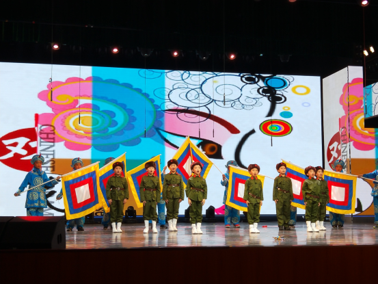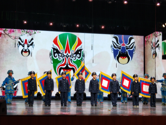 我校是第12个出场的,参加表演的40位学生,在我校刘燕老师和戏曲老师的带领下,早早换好服装,化好妆,在后台经过漫长的等待后,终于可以在台上尽情的释放。随着音乐的节奏,表演的京剧联唱,小演员们一招一式有板有眼。节目分为四段表演时间虽然不长,但给观众留下了深刻的印象。