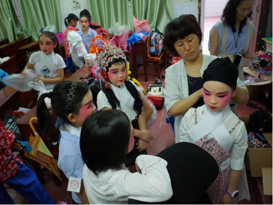 表演只是短暂的精彩绽放,我们更加应该看到他们背后的辛劳。为了这个表演,早在两个月前我们特聘请了省京剧院韩老师及李老师负责教授,他们非常辛苦、负责,不厌其烦地口传心授,在此非常感谢。每次排练完,都能看到学生们一边继续哼唱曲调一边欢快奔跑的身影。由于孩子们从未接触过京剧,刘燕老师经常利用休息时间一遍遍辅导她们,从唱腔到咬字,力求唱得更专业;正是这样他们都非常认真和完美的完成了老师交给他们的任务。刘燕老师不辞辛苦的组织每一次训练活动,并和张玉珂老师为表演购买服装和道具,细心的刘燕老师检查每一件表演服和道具,确保节目完美的舞台效果。