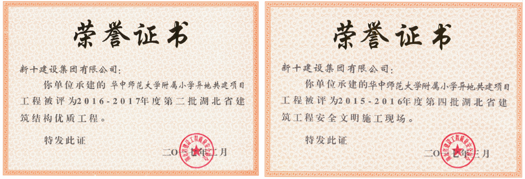 近日,从华师附小异地共建项目指挥部传来喜讯,由新十建设集团承建的华师附小新校建设工程荣获省住建厅颁发的2016-2017年度“湖北省建筑结构优质工程”奖。该荣誉是湖北省建筑行业结构工程质量的最高荣誉。
