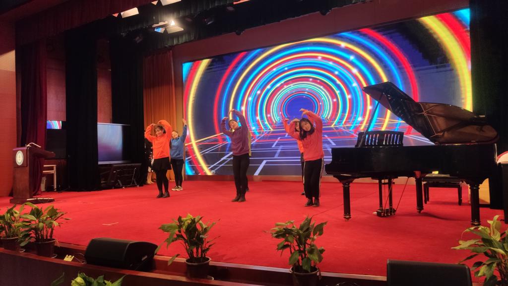 作为“宝贵资源”的男教师,夏宇老师深情款款的一曲献唱,和女教师们的舞蹈,有机融合,相得益彰。