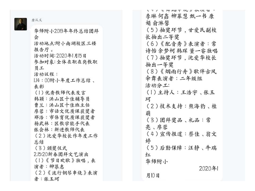 2020年1月15日下午,华师附小2019年教职工团拜会在南湖校区阶梯教室如期举行。