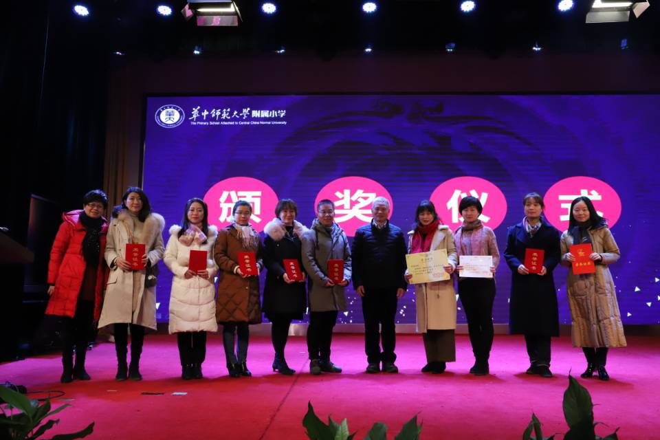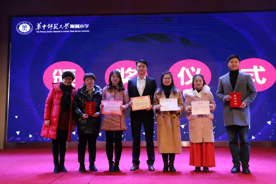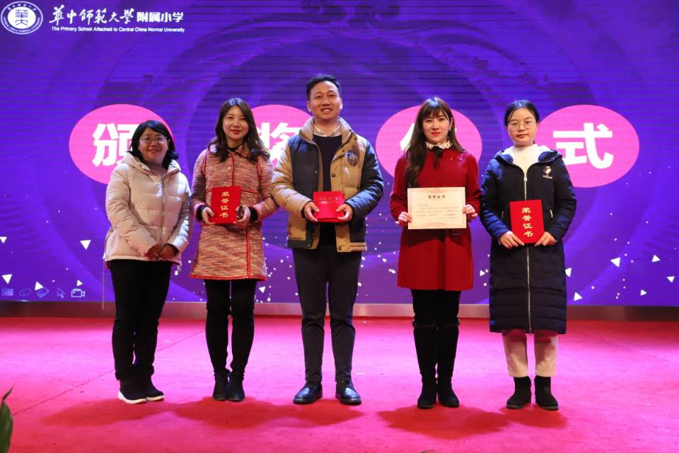 附小校领导为获奖教师们颁发荣誉证书,并合影留恋。获奖教师们手里捧着的一张张沉甸甸的奖状,记录了他们在过去一年的辛苦付出。